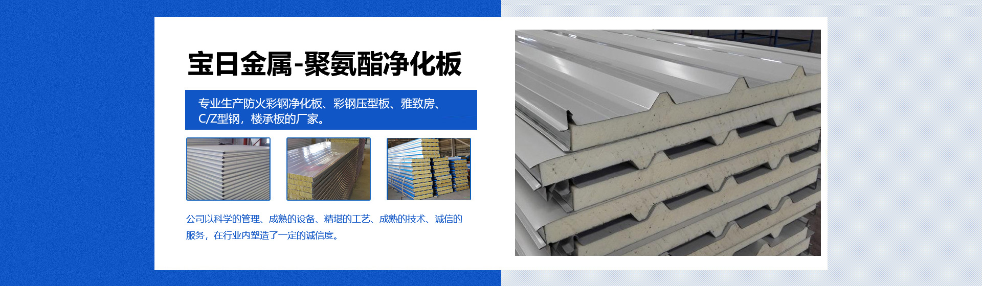專業(yè)生產(chǎn)夾芯板、防火彩鋼凈化板、彩鋼壓型板、雅致房、C/Z型鋼,樓承板的廠家